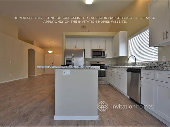 Home Features and Amenities: Air Conditioning, Fenced Yard, Garage, Granite Countertops, Kitchen Island, Long Lease Terms, Luxury Vinyl Plank, Pet Friendly, Smart Home, Stainless Steel Appliances, W/D Hookups, and professionally managed by Invitation Homes.