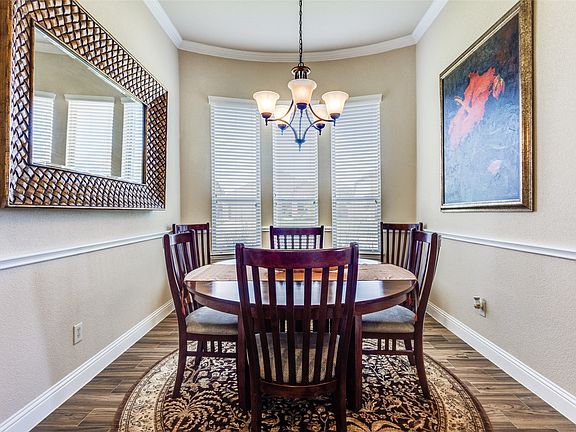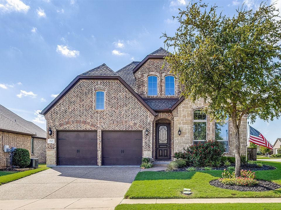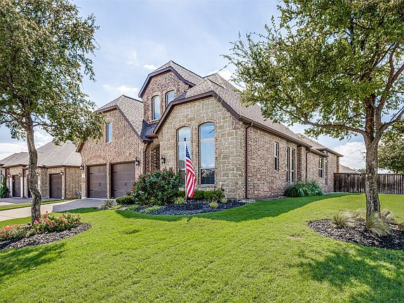 Bright, Elegant, and Exceptionally Maintained Corner-Lot Home in Top-Rated McKinney Schools! Step into a single-story stunner where soaring 12-foot ceilings, arched hallways, and abundant windows bathe every room in natural light. This 3-bed, 2.5-bath residence—lovingly maintained by its original owner—offers an open, airy feel that’s both welcoming and refined. The kitchen features granite countertops and rich wood cabinetry, flowing seamlessly into a living room crowned with a coffered ceiling, gas fireplace, and custom ceiling fans. The primary suite is a retreat with a trey ceiling accented by crown molding, plus a natural stone–floored bath. Guest and powder baths share the same natural stone flooring for a cohesive, high-end look and also include granite countertops. Practical upgrades include a tankless water heater, a Trane 5-ton upflow horizontal gas furnace, three overhead heavy-duty garage storage racks, and an LG French-door refrigerator that conveys. Outdoors, the extended patio, which is an upgrade, invites relaxed evenings or lively gatherings. As a unique bonus, the purchase includes a Thomasville burled-wood bar with granite top and two upholstered leather bar chairs—perfect for entertaining. All of this rests on a corner lot in a quiet and beautifully maintained neighborhood served by highly rated McKinney schools, offering convenience, style, and lasting value.