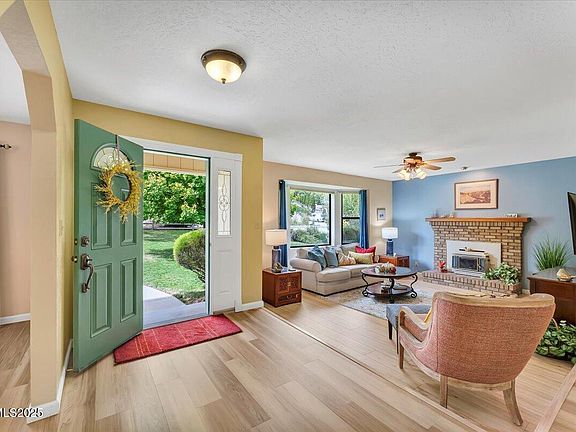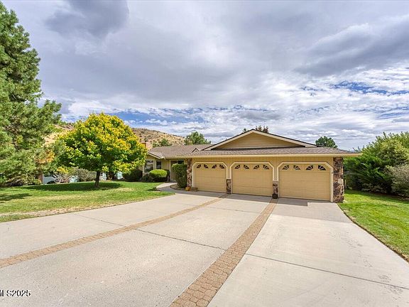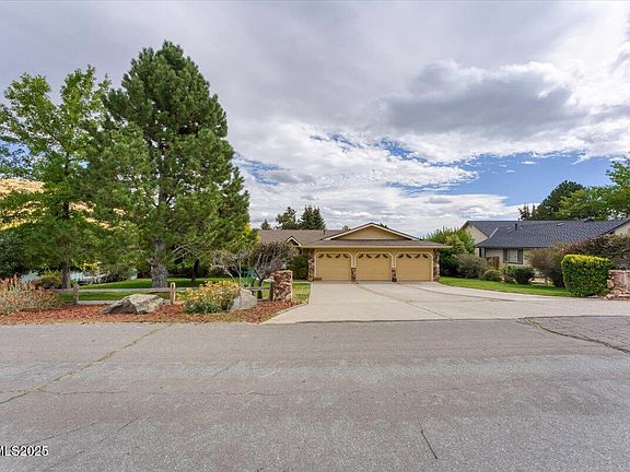 Located on one of the first streets in the desirable Timberline neighborhood, elevated above Carson City, this exquisite home offers breathtaking, unobstructed views of the city skyline, framed by mature trees that provide privacy and shade. Backing up to undeveloped land, this property has no rear neighbors, creating a peaceful and serene sanctuary. Step inside to a thoughtfully designed interior perfect for both relaxation and entertaining. The spacious family room, featuring a cozy gas fireplace and a convenient bar sink, is ideal for hosting gatherings. Adjacent to the family room, the newly updated kitchen flows into the formal dining room, creating an inviting space for meals and special occasions. The separate living room offers a quiet retreat for relaxation. The master bedroom, kitchen, and family room all open to an expansive deck through sliding glass doors or brand-new French doors from the kitchen, inviting you to soak in the stunning views and tranquil surroundings. This home boasts modern upgrades, including a new roof, new gutters, and a new heating and air conditioning system, ensuring comfort and efficiency year-round. Luxury vinyl plank (LVP) flooring runs throughout most of the home. The landscaped front and back yards enhance the property's charm, offering inviting outdoor spaces to enjoy the natural beauty of the area. Experience the perfect blend of comfort, privacy, and panoramic views in this Timberline gem.