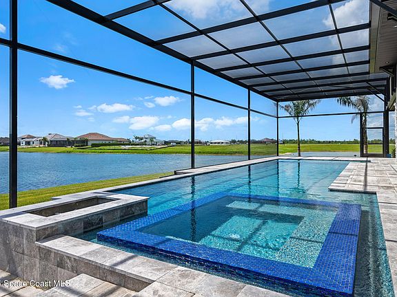 A masterpiece forged over two years of visionary artistry nears completion on Adelaide's most coveted lot, with sweeping views down Viera's grandest lake. Hardwood & rich tile floors lead to a magnificent great room, where a sleek electric fireplace anchors soaring ceilings. Disappearing sliders reveal a resort-worthy backyard oasis. The gourmet kitchen, a study in elegance, boasts marbled quartz, Thermador appliances, a butler's pantry, and an expansive island for lavish gatherings. A versatile flex room dazzles with dual pocket doors and a pool bath. The owner's suite, a serene escape, offers lanai access, a spa-inspired bath, and a celebrity-caliber closet with a hidden laundry passage. Outdoors, a vast saltwater pool, summer kitchen, and fireplace craft a timeless sanctuary. An air-conditioned Amazon delivery room and four-car garage elevate this estate to unrivaled perfection, leaving no desire unfulfilled.