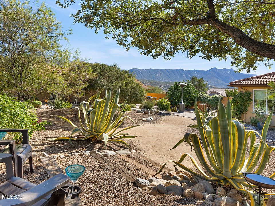 Stunning and distinctive, this extensively remodeled 3BR/3BA + Bonus Rm 2.5 garage Home, complete with 452 sq ft GUEST HOUSE has been reimagined with a custom floor-plan redesign that enhances flow, natural light, and daily functionality.Corner lot with superb curb appeal & extra-deep yard delivers resort-level living & mountain views. Backyard feels like a private retreat featuring one of SaddleBrooke's most impressive pools-lap length natural lagoon design w/waterfall, lush landscaping, citrus trees & multiple seating areas. Open-concept main house offers porcelain wood-look tile (no carpet), all new windows/doors incl. French doors, solid alder interior doors & designer kitchen w/4x8 quartz island, gas cooktop, double oven & abundant smart storage. Primary suite w/double-door entry, ensuitseparate vanities, tiled shower & walk-in closet. Front bonus room with pocket door framed by moutain views for office, den, studio or guest space. Perched above the pool, the furnished 452 sq. ft. guest house offers a living and dining area, kitchenette, bedroom, and bath--an ideal, boutique-style guest retreat. Preinspected and repairs completed--the property is move-in ready. Come enjoy all that SaddleBrooke has to offer: championship golf, resort-style pools, fitness centers, pickleball and tennis, on-site restaurants, and over 100 clubs and social groups. Set against the Santa Catalina Mountains, SaddleBrooke delivers an active-adult (ownership availabe 40+) lifestyle unlike any other--where every day feels like a vacation.