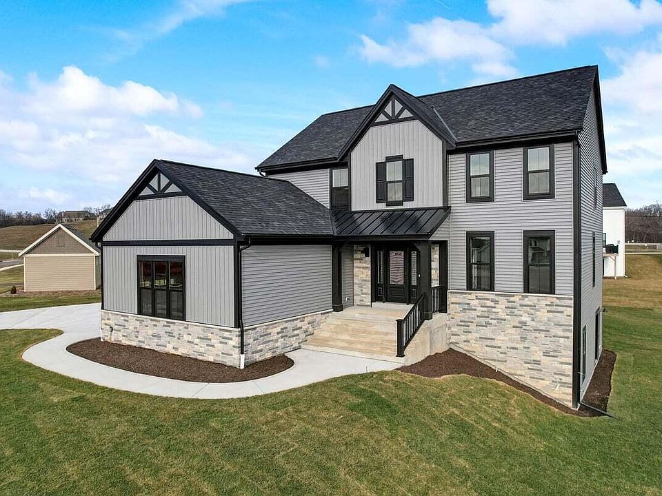 Essential living spaces get an upgrade in this home starting with the kitchen, which features a walk-in pantry and prep island that can also be used as a snack bar. Moving past the dining area, the great room offers a cozy gas fireplace in a spacious room designed for family time. Finishing the first floor is a multi-use home office, powder room and large mudroom with a built-in bench and storage. The second floor is home to three secondary bedrooms, hall bath that is compartmentalized for simultaneous use by multiple family members and a large master bedroom with attached bathroom featuring a dual vanity, five-foot shower and a private water closet room. Full walkout lower level