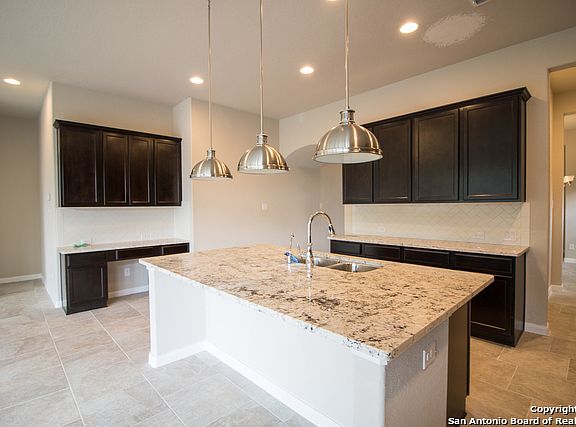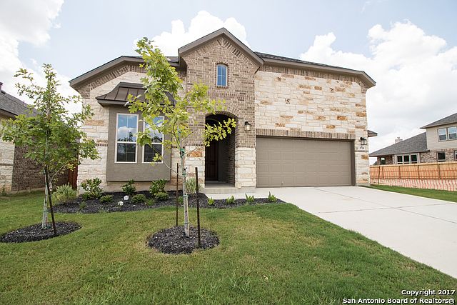 You'll love the open 4 bedroom, 3.5 bathroom, 2-car garage stone with brick exterior and generous rooms in this beautiful Persimmon plan backs to a permanent greenbelt. At 3,414 sq. ft., this plan features large rooms everywhere. The grand entry is 2-stories high with a second floor open rail balcony looking down on you. The study is up front and offers the privacy need with French doors. There is a secondary bedroom room with its own full bath tucked away on the first floor offering perfect guest retreat o