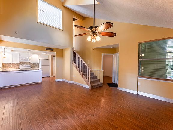 Great opportunity for a 3/2 home in a highly desired location; 'A' rated schools, beautiful beaches, premium shopping, boat ramps & outdoor activities, community pools, basketball court, tennis court, racquetball court, & playground. The split bedroom floor plan offers an open layout for entertaining. Bedroom & bathroom on the main floor & the other 2 bedrooms & bathroom upstairs. Property features hand scraped wood tile on the main floor & screened patio. Personalize this property for yourself or for an investment property.