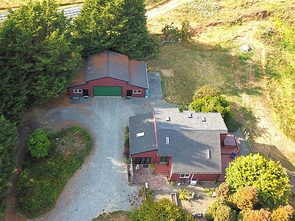 Stylish custom-built home with a new roof as of 2021, tucked away in a secluded setting on 5 acres with southern exposure. Jardin du Soleil Lavender Farm to the north and 10 acres of land trust to the west are among your delightful neighbors. The main residence boasts 1,900 sq ft of custom-built living space with two bedrooms and two bathrooms (one on each level). A generous sized laundry room that can also flex as additonal living space or craft/workout area. The kitchen is appointed with tile backsplash & granite countertops. Open the French doors off the dinnig area to a spacious private deck with a hot tub where you can relax under Sequim's amazing displays of starlight. The grounds include raised garden beds, a greenhouse, whimsical alcoves, a circular driveway, delicious blackberries, fruit trees (apple, pear, cherry, and plum), a detached two-car garage with a workshop, plenty of storarge, and a charming 288 sq ft main level guest studio apartment equipped with a kitchenette and full bathroom. The upper level of the garage provides a private multi-purpose room or dude den.