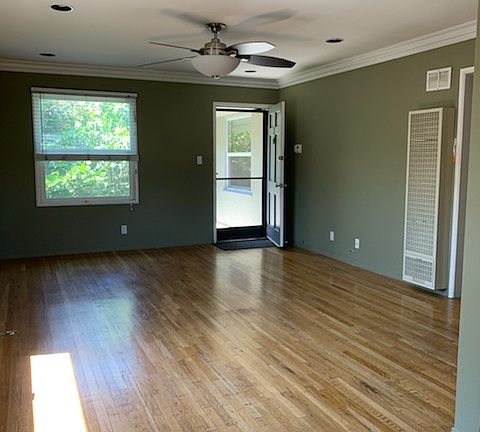 Quiet courtyard buildingDining roomRecessed lightingHardwood floorsAir conditioningDouble-paned windowsCeiling fans