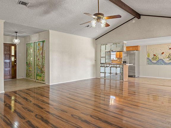 Move-in ready 3-bedroom home backing to Northwest Park in Irving with direct views of the playground, water park, and rec center! Features include a large lit back porch, gazebo, small patio, storage shed, fruit trees, and great curb appeal with rose bushes and flowers. Inside offers remodeled main and primary baths, spacious primary closet, laminate flooring in bedrooms and living area, and a hidden storm and or safe room at the entry. Kitchen includes all appliances, refrigerator, stove, cooktop, microwave, and dishwasher. Plus a generous pantry and laundry room with washer and dryer.