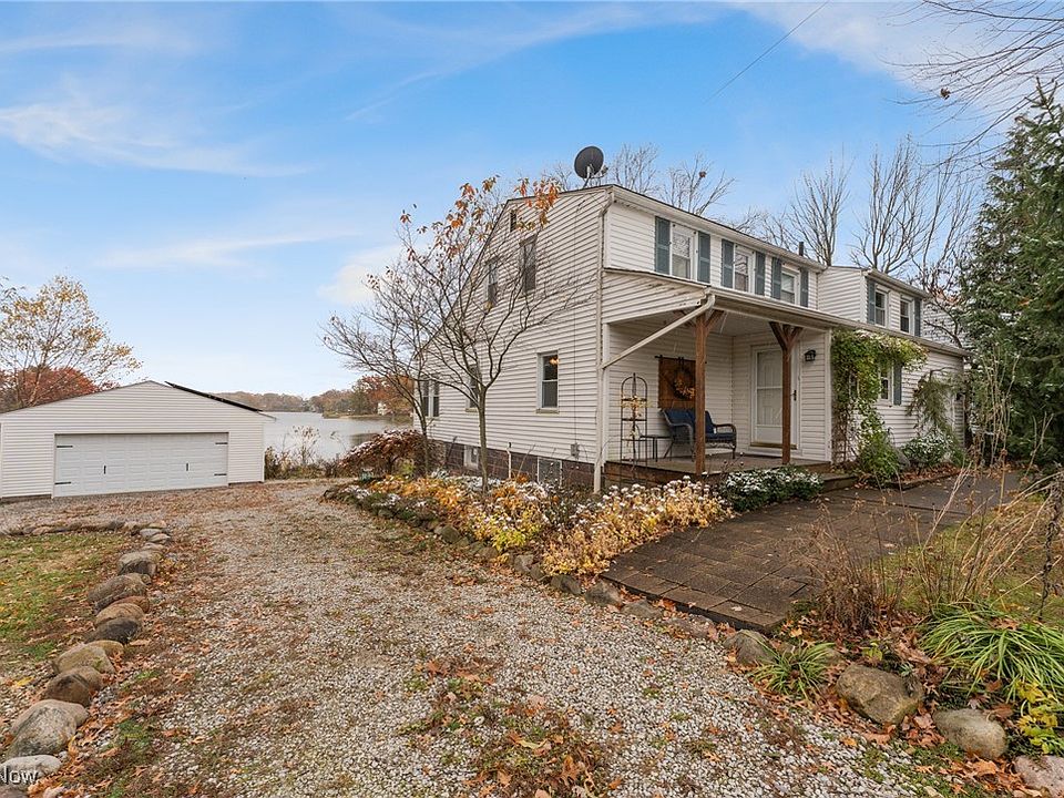 Experience lakeside living at its finest! This charming home located directly on the North Reservoir of the Portage Lakes features timeless design, natural beauty, and modern comfort. Set at the end of a tranquil private-feeling street, this 3 bedroom, 1.5 bath waterfront home sits on nearly a half-acre landscaped lot complete with abundant native plants and fruit trees/bushes. The home features an updated kitchen boasting maple cabinetry and granite countertops as well as an open living room/dining room with exposed beam detail. The main level also includes a wood-burning fireplace, making it ideal for cozy evenings or entertaining. Sunlight pours into the glass-wrapped sitting room offering serene views of the lake creating the perfect backdrop for morning coffee or an evening unwind. There are beautiful views from virtually all rooms in the home! Heading outdoors, the property expands into a beautifully landscaped double lot designed for both leisure and privacy. Mature trees add charm, while the expansive deck and brick patio provide effortless spaces for elevated entertaining. The dock was newly added in 2022 and has extra space for relaxing waterside. With direct access to the no-wake North Reservoir, you’ll enjoy peaceful kayaking, paddle-boarding, or simply watching the lake shimmer at sunset around the large fire pit. A lake home is incomplete without exceptional utility, and this one delivers! An oversized, detached 2-car garage built in 2009 provides premium storage and hobby space, complete with 30-amp electric service for an RV. Updates within the past few years include the roof, gutter guards, front porch, 200-amp electrical service, a solar-powered battery back-up system, water softener, and walk-in shower spa in the primary bathroom. For the buyer seeking tranquility, space, and a touch of understated luxury in one of Portage Lakes’ most coveted waterfront settings, 3719 Bower offers more than a residence—it offers a refined lakeside lifestyle.