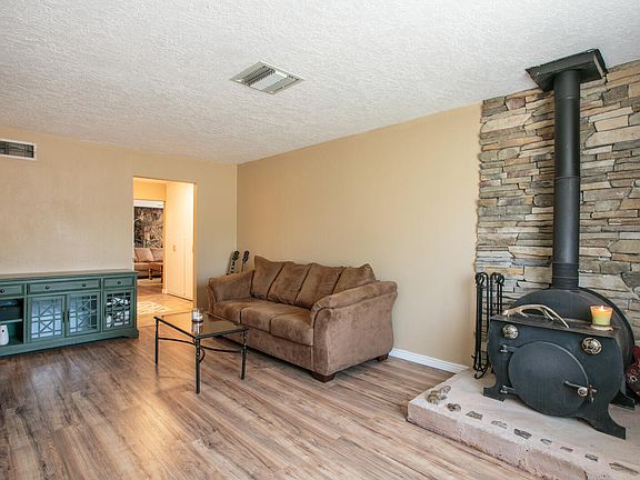 A Beautiful Single-Story Home in the Heart of Albuquerque. This 1473 Sq Ft Gem Offers 3Bedrooms, 2Baths, Carpet/Stone/Vinyl Floorings, 2 Living Rooms, Security Cameras, Huge Backyard & More! Enter the First Living Room You Will Find a Well-Maintained Spacious Area With TV & Wood-Burning Fireplace Perfect for Relaxing. 2nd Living Room Opens Up to the Kitchen With Granite Countertop, Stainless-Steel Appliances & Lots of Cabinets, Large Enough to Host a Get-Together. Master Suite Has Its Own Access to the Backyard. Secondary Room, a Full bath & Half Bath to Follow. Outdoors is a Walled Backyard with Open Patio, Landscaping, Trees, Chicken Coop & Shed Perfect for Some BBQ Night. This Home Is Just Across from A Park & Near Schools, Restaurants & Shopping. Come Schedule Your Showing Today!