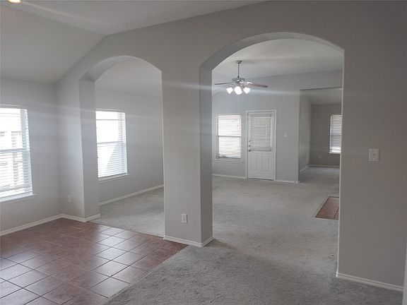 3 bedroom + den, 2192 square foot home, open floor plan with rounded sheet-rock corners & arch ways , 2' faux wood mini-blinds, tile floors in all wet areas, large kitchen w/upgraded cabinets, living room w/fireplace. The extra room opens to the living area that is perfect for a study, nursery or game room. Master bath offers double sinks, separate shower & garden tub. The backyard has built-in covered porch. Walking distance to neighborhood park and pool.