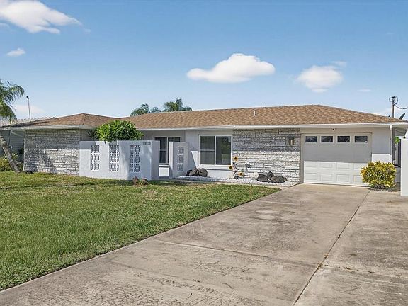 Boater’s paradise—direct Gulf access with no bridges! This beautifully updated 3-bedroom, 2-bath pool home in Gulf Harbors delivers the ultimate waterfront lifestyle. With over 1,500 sq. ft. of living space, every detail has been thoughtfully refreshed for modern coastal living. Set on a deepwater canal, enjoy your private floating dock, fenced yard, and sparkling pool area—perfect for entertaining or soaking in evening sunsets. Inside, the open floor plan features abundant natural light, coastal plank tile flooring throughout, a sleek modern kitchen, and spacious bedrooms. The 1-car garage and a double wide off-street parking driveway make this home as practical as it is stunning. The home also has a Ring Security Camera system and Doorbell. Located in the desirable Gulf Harbors community that has an optional active civic association with a clubhouse / hall that offers a multitude of clubs, occasional community events and two community boat ramps all for a low annual fee (optional). In addition, residents also have the option to join the exclusive Gulf Harbors Beach Club for private beach access on the Gulf of Mexico. Beach membership is only $200.00 per year and offers pristine sandy beach access, restrooms, 21 pavilions, charcoal grills and outdoor showers. This exquisite move-in-ready home is ready for its next chapter—schedule your private showing today.