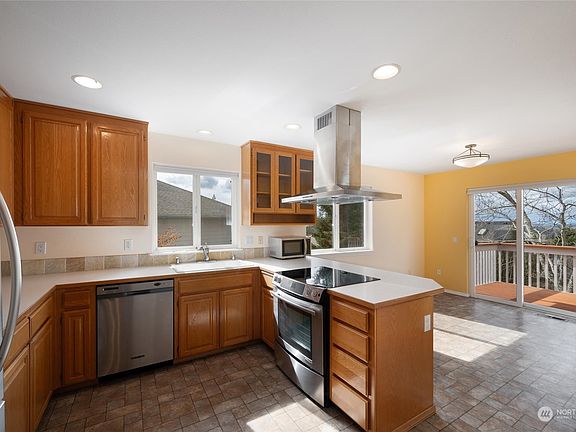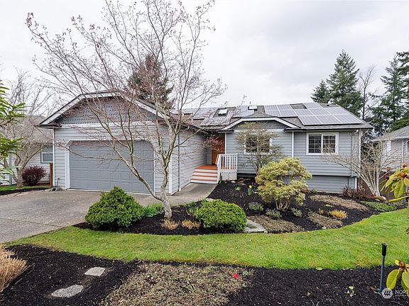 This in-city four-season gardener's paradise awaits it’s new owner! The 3 bed/3 bath home is 2,911 sqft home & offers views, a south-facing deck and backyard, and exquisite plantings all around. It has been lovingly cared for and maintained, has a solar-power array on the new roof, fresh exterior paint and an electric car charging outlet in the garage. Primary bedroom on main floor with dual vanity, soaker tub and low-threshold shower. Basement has been used as MIL suite with exterior access. Downstairs bonus/game room with slider to backyard. Backyard gardening area with drip watering system fed by large rain catchment cistern. Newer kitchen appliances and flooring. High-efficiency natural gas, forced-air furnace with A/C unit.