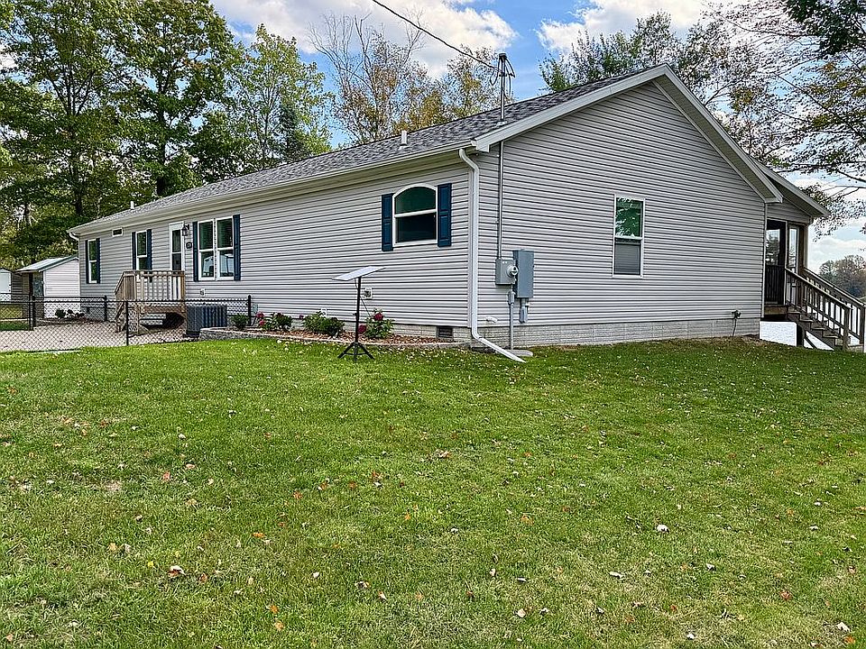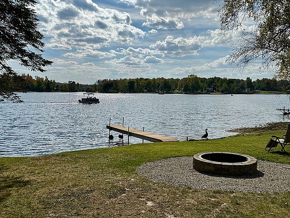 Lake living at its best! This 5-year old 2,040 sqft ranch sits on 3 lots of private Lake Maloy, providing 165 feet of lake frontage! Come down the private drive and enjoy the fishing, wildlife, and no-wake boating and then relax in the modern and comfortable home with a 48’ long covered screened porch overlooking the lake. A huge primary suite is complete with walk-in closet and bath with a giant walk-in shower and jetted tub. Two bedrooms are on the opposite side of the home with their own full bathroom. A hosting kitchen with huge center island, long buffet counter, and massive pantry opens to the Living and Dining areas. Outdoors is a 24’x40’ pole barn garage with storage area, two additional shed buildings, an updated 24’ long dock with wheels, and a new firepit.
