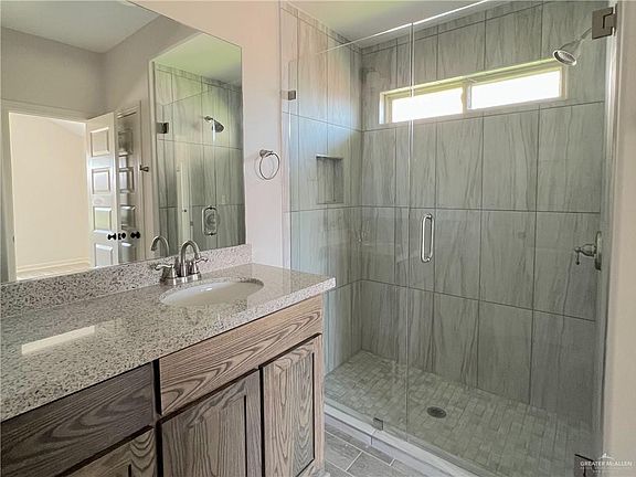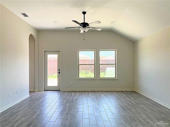 This beautifully built modern home offers an open an functional 1 story layout, perfect for comfortable living. It features 3 spacious bedrooms, 2 bathrooms, a dedicated Laundry room, Pantry, 2-car garaged and a generous backyard. The Master Suite includes a large walk-in-closet, and the sleek, modern kitchen is equipped with stainless steel appliances, a center island, granite countertops. Fresh new grass in the backyard and a complete sprinkler system for you to enjoy all year-round. For your convenience and peace of mind, the home comes with Security System at no extra cost, plus FREE Wi-Fi. Located in a quiet, family-friendly and well maintained neighborhood on a cul-de-sac, just a minute walk from the mailbox and playground. This brand-new development offers a peaceful environment with easy access to the expressway, schools , parks and shopping centers an local amenities. Just minutes from South Texas College, Rowe and McAllen High School, Convention Center, HEB and Target
