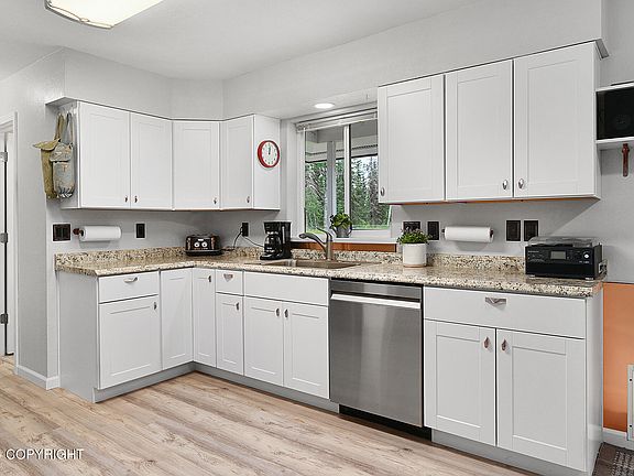 WALK TO THE BEACH from this 4 bedroom, 2.5 bath REMODELED HOME! Very private yard that is COMPLETELY FENCED & GATED for your kiddos & pets. Huge carport, gravel parking lot, covered back porch & 2 sheds. Remodeled from 2019-2023 inside & out! New exterior siding, gutters, paint inside & out, remodeled kitchen & bathrooms, Luxury vinyl plank, on-demand boiler & Kinetico system. HOME WARRANTY!Additional info: School busses stop right out front of their gate. Internet is super fast GCI fiber optic. Cluster box down the street for mail. Walls on the back porch can be moved. Exterior rope lights are wired in. All beetle kill trees have been removed. Buyer to verify all information.