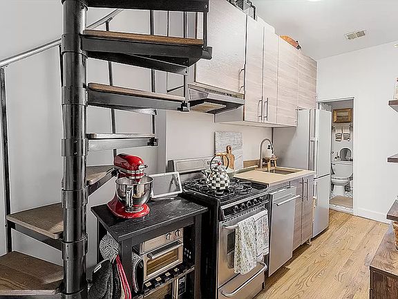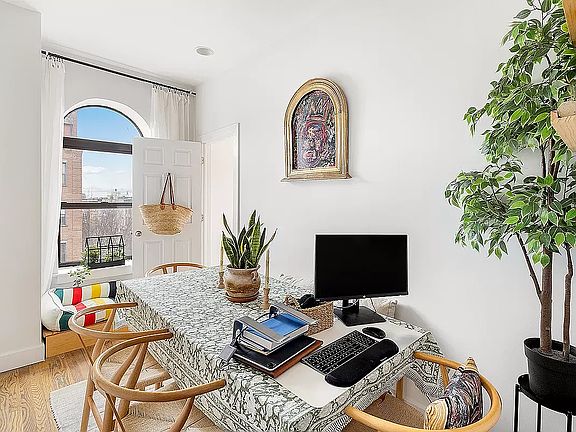 Featuring three beautiful round-arched windows facing picturesque 2nd Street in Park Slope, this duplex 1-bedroom apartment is a renovated oasis. On the main level, an open kitchen features stone countertops, a full sized range, dishwasher, and full size refrigerator. Around the corner from the living/dining room is space for an office, extra storage, and features in-unit washer and dryer. A renovated bathroom features vanity storage and a stall shower. The upper level features another sleeping area. "The Slope" at 372 2nd Street has recently undergone a complete modernization; the common areas have been updated and the building has been equipped with the Latch keyless security system, allowing residents to securely and remotely manage access. A full-time managing agent is professional and responsive, providing an online portal for rent payment and maintenance requests, as well as a dedicated superintendent. Subway stations nearby include the R-train at Union Street, along with the F and G-trains at 4th Avenue-9th Street. Enjoy outdoor dining or takeout from great local eateries on 5th and 7th Avenues like Katsuei, Bogota, Negril, Alchemy, Stone Park Cafe, Calexico, and al di la Trattoria. The main entrance to Prospect Park, home of the Grand Army Plaza Greenmarket (every Saturday, year-round), is just a short trip away. Please note pictures are virtually staged.