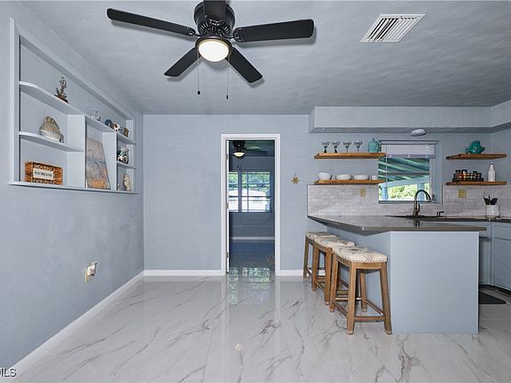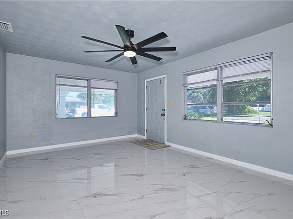You're going to love this beautifully updated 3 bedroom, 2 bathroom, concrete block home located in Fort Myers where there's no HOA and no flood insurance required! From the time you walk in the front door, you'll appreciate the gorgeous large porcelain tiled floors, freshly painted walls, cute kitchen, and huge master bathroom (162 sq.ft.). The fully fenced back yard is spacious and perfect for your children and pets. The shed is great for storage along with a handy workshop attached to the carport. No rental restrictions so it's perfect for an investment property. HVAC 2022. Water Heater 2023. Close to downtown, shopping, restaurants, and renown beaches. This home is clean, bright, and move-in ready! Schedule a showing today.
