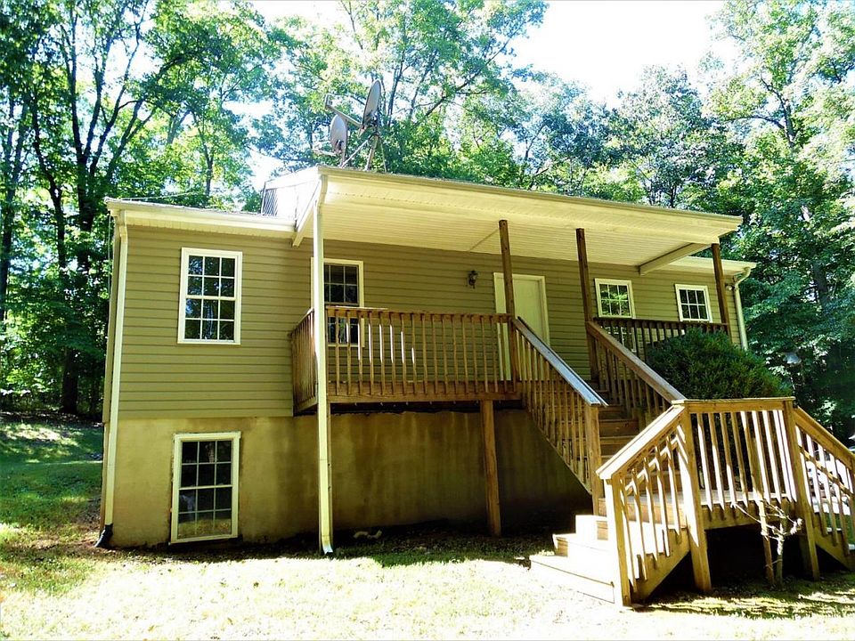 One Story 3 BR 2 bath w Full Walk out Basement W/Roughed In Bath, Corner Turning Stairs To Save Space, Large Front Porch, Private Wooded Tract, Good Location. A finished room in basement used as 3rd BR or office.
