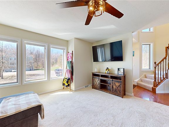 Nestled on a peaceful cul-de-sac in the community of Overlook At Chippewa Heights. Built in 2014, the floor plan offers a perfect blend of comfort & modern living. The spacious kitchen is the heart of the home and features ample counter space, rich cherry cabinetry, stainless steel appliances and a welcoming dining area. Step outside from the kitchen to a large deck which serves as a relaxing overlook to your private yard, complete with steps for direct access to your outdoor sanctuary. Adding to the home's versatility is the bonus room in the lower level, ideal for a game room, dedicated workout room or private office space.