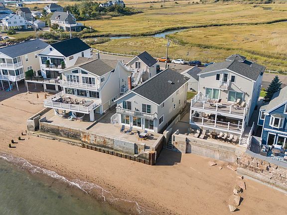 Looking for the perfect seaside retreat or a year-round waterfront oasis? Look no further. 372 Cosey Beach Ave, a rare opportunity to customize a home in a location that truly speaks for itself. Situated at the end of the beloved Cosey Beach in the heart of Momauguin across from the marsh, this property places you just steps from restaurants, the beach, a splash pad & more. This charming home comes with a detached 2-car garage, a reinforced seawall & a sandy beach area-ideal for soaking up the sun. A full-width patio spans the front of the house, providing uninterrupted, panoramic views of the Sound-the perfect setting for morning coffee or sunset dinners. Inside, the main level features an open-concept design that offers breathtaking water views from the moment you walk through the front door. This floor includes a half bath, mechanical/storage room, laundry room & a spacious kitchen, dining & living area-all seamlessly connected for open concept living. Upstairs, you'll find a large full bathroom w/both a soaking tub & separate shower, along w/2 generously sized bedrooms, each w/private balconies that look over the ocean-perfect for enjoying the sea breeze. The primary suite, complete w/ a private en-suite bath & an additional flex room-ideal for an office, nursery, sitting room, or even the option to expand the suite into a larger bedroom. Whether you're dreaming of a serene getaway or a year-round residence, 372 Cosey Beach offers endless potential ! The home needs some updates and it's being sold as is so any inspection would be for informational purposes only. For the seller the fireplace is covered up for energy efficiency/insulation purposes