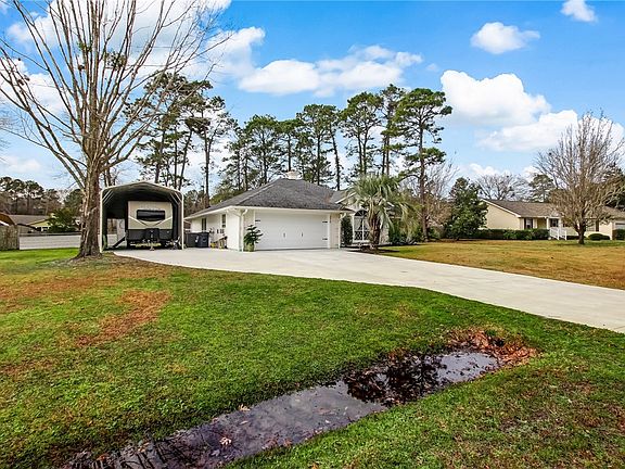 NO HOA l! Upgrades, Upgrades, Upgrades! WOW, what a find!! This beautiful 4-bedroom, 2-bathroom home located just off Harriett's Bluff in the quiet subdivision of Mallard Pointe gives you all the space you need and the backyard you desire. Every room in the home is centrally located around the entertainment areas making this layout extremely functional. As you enter the living room you will find a wood-burning fireplace so grab your favorite blanket cozy up and gather around. The home features new premium vinyl planking flooring and tile throughout the entire house. There are spacious bedrooms, separate living and dining spaces, and a cozy kitchen. Many upgrades throughout the home include: freshly painted, beautiful new quartz kitchen countertops, stainless steel appliances including a new Samsung refrigerator, a new garbage disposal, an upgraded new guest bathroom with a beautiful vanity, new lightning fixtures and fans throughout, new water softener system, WIFI smoke detectors, reverse osmosis, new garage door /opener with Wi-Fi capability, 25 x 15 RV cover to convey 30 amp power (220), power for Alexa hookup for RV parking, grey water hookup, all gutters are drained underground to the ditch, easy to maintain tabby front and wood siding, underground electrical conduit from AC to Palm Tree, garage cabinets/workbench and storage shelves, partially floored attic, ample storage, newer roof (2019), and newer HVAC (2018). Choice home warranty 1/19-2/19/25. Long day at work, no problem because you can come home and sit and relax on this beautiful large screened covered porch which has been completely renovated and overlooks the large fenced-in-backyard which is just perfect for entertaining. This home also features a new concrete expanded driveway ( 4-5 car space) and slab for RV. This beautiful home is a must-see and it won't last long! Don't wait and schedule your showing today!