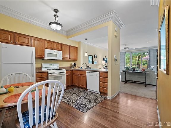 Welcome home to this warm and inviting 2-bedroom, 2.5-bath beauty backing to single-family homes in Mill Pond. This well-cared-for residence features gorgeous crown molding, custom built-in shelves, and an updated fireplace that creates the perfect focal point in the living room. The remodeled kitchen (2011) offers upgraded oak cabinetry and room for a dinette. A triple-door slider (new in 2011) opens to a peaceful patio-ideal for morning coffee or evening relaxation. Upstairs, you'll find two spacious bedrooms, including a primary suite with private bath and a newly replaced window (2024). Convenient second-floor laundry makes everyday living easy. Major updates include HVAC (3 years) and water heater (5 years). This loved home in the desirable Mill Pond subdivision offers comfort, style, and a wonderful Batavia location close to shopping, theatre, post office and all Randall Rd amenities.