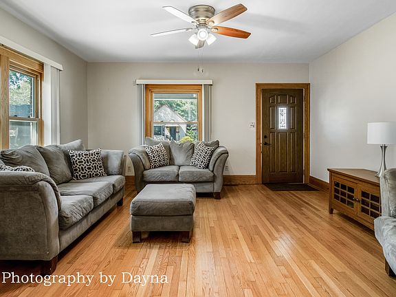Timeless Charm Meets Modern Comfort in Central Bradley! Step into a beautifully maintained 3-bedroom, 2-bathroom brick home that blends classic elegance with contemporary upgrades ~ Nestled in the heart of Bradley, this 1.5-story gem offers everything you need for cozy living and stylish entertaining ~ Features You'll Love: Inviting Front Porch with swing-perfect for morning coffee or evening relaxation ~ Refinished Hardwood Floors and original wood trim throughout the main level ~ Spacious Dining Room ideal for everyday meals or hosting guests ~ Fully Remodeled Kitchen (Jan 2025): Gray Shaker-style cabinets, Quartz countertops, Soft-close drawers, Recessed lighting + under/over cabinet lighting, Subway tile backsplash, Large pantry closet, LVP flooring, All appliances included! ~ Comfortable sized bedrooms incl Two main-floor bedrooms with hardwood floors, oak doors, with vintage glass knobs plus Dormer-style upstairs bedroom is 13x15 + 8x12 with generous closet space and walk-in attic storage ~ Finished Basement Retreat offers Family room with wet bar and wall-mounted large screen TV (included) for watching your favorite sports games! ~ Flexible bonus room great for exercise, gaming, office, toys or crafts ~ Second full bathroom, laundry area incl utility sink, plus a storage room ~ Outdoor Area & Garage Perks Include: Fenced backyard with patio space for dining and entertaining plus garden area ~ Two separate detached garages: 1-car garage PLUS 1.5-car heated garage with walk-up loft workshop space ~ Recent Updates: House Roof Oct 2016; Garage Roofs Sept 2024; Furnace 2010; Air Conditioner 2015; Hot Water Heater May 2025; Garage Door & Opener 2023 ~ Seller is offering 1 Yr HSA Home Warranty ~ Conveniently located near Perry Farm, many restaurants, shopping, schools, churches, & fitness centers! This home is a rare find with classic charm, modern upgrades, and space to live, work, and play ~ Ready to make it yours?