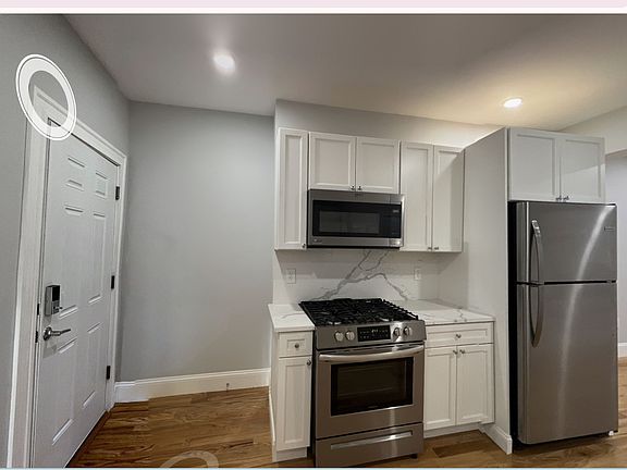 Harvard/Porter Square. Closest train = Porter Square (Red Line). 2 bed/1 bath (third floor, left-side, rear unit). Brand New Everything 2022 (all high-end finishes). Open kitchen/living. New white-granite counters. New cabinets. New stainless-steel appliances. New hardwood floors. Modern/tiled bathroom. In-unit laundry. Central Heat and AC. LL pays for hot water. Private rear deck.