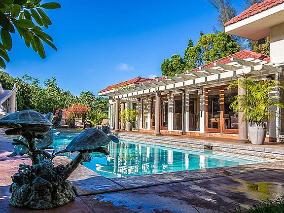 The property includes 5 extravagant bedrooms & 3.5 baths & enjoys an open and inviting floor plan. The grounds are adorned with tropical flowers, specimen plants, mature fruits trees and palm trees making then a horticulturalists wonder and a nature lovers delight.