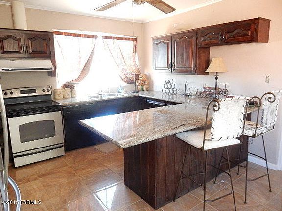 Adobe brick house built in 1946 on 12 acres with detached garage and 10 stalls covered mare motel. There is a cleared arena spot or riding area. Very well built for that era. Great Views of the Dragons and Whetstones Pond with very large mesquites around pond and house. There has been some interior remodel and updates but still needs some TLC but could be brought back to its Glory Days of the 40's. Property sold AS-IS