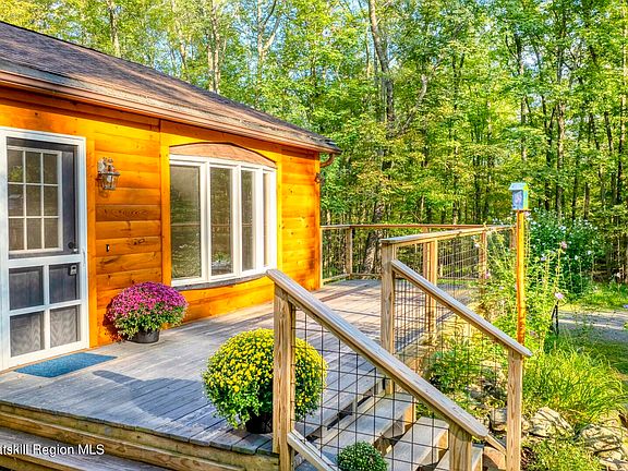 OPEN HOUSE SAT. NOV. 9TH FROM 12 TO 2PM. This Stone Ridge Country Home is tucked back off the road in a beautiful peaceful setting with stone walls on a gorgeous landscaped lot. A spacious front porch welcomes you into this comfortable 3-bedroom, 2 full bath home with an open kitchen/dining area and glass sliders to a scenic backyard perfect for picnics, gardening or just relaxing. There is also a full clean basement with a 1 car garage and work/storage space. The boiler and HWH are just 2-3 years old and there is 200 Amp underground electric as well. Don't miss this sweet home with so much to offer.