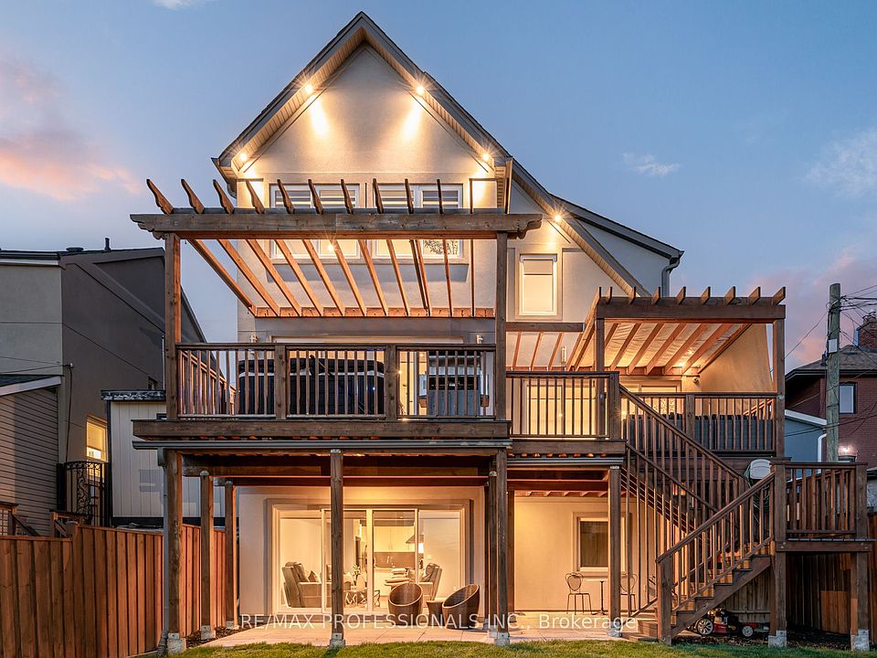 Welcome to this contemporary, light-filled home offering nearly 4,000 sq. ft. of beautifully finished living space. Designed with modern living in mind, it features 4+2 bedrooms and 4 full bathrooms, providing comfort, function, and flexibility for families, professionals, and multi-generational needs. The main floor showcases a bright open-concept layout with 9-ft ceilings, hardwood floors, and a stunning chef's kitchen anchored by an oversized island - perfect for gatherings and everyday living. Double patio doors extend the living and dining areas onto a spacious composite deck, creating a seamless indoor-outdoor flow. The backyard is a private retreat with multiple walkouts, a dedicated hot tub zone, separate seating area, five roll-down privacy screens, and a unique ceiling irrigation system beneath the deck that waters the landscaped garden. A main-floor office (or potential sixth bedroom) sits beside a full bathroom, ideal for guests or extended family. Upstairs, the oversized primary suite offers a spa-like ensuite and custom walk-through closet. All upstairs bedrooms feature walk-in closets and large windows, providing abundant natural light and excellent storage. The walk-out lower level features a fully self-contained 2-bedroom suite with its own entrance, patio, laundry, and lock-off zones - perfect for extended family or a high-demand rental suite ($2500/mth potential) that can significantly offset monthly mortgage costs. Additional highlights include CAT5E wiring, 200-amp service, Nest thermostat, CCTV, app-controlled garage opener, built-in surround sound, backwater valve, private drive, and a single-car garage with storage. Located steps from the new Eglinton LRT and minutes to downtown, the airport, Yorkdale, The Junction, and Stockyards, this home offers exceptional space, smart upgrades, and valuable income potential.
