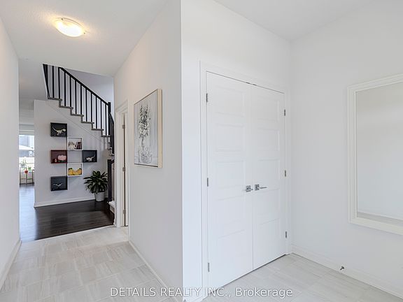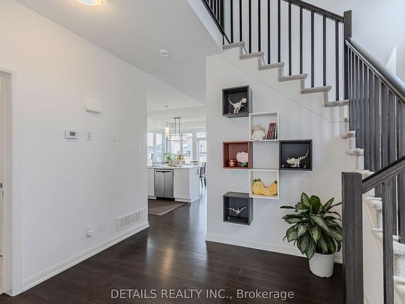 Nestled in the charming and tranquil community of Rockland, this exceptional and thoughtfully designed single family home offers a perfect blend of functionality, comfort, and style! Covered front entrance w recessed lighting, front door w Upper and Side transom window enhance its curb appeal. Stepping into this home, welcoming grand foyer leads you into the Fully open family rm/dining rm/kitchen main floor, all dressed in rich hardwood flooring. The cozy fireplace in family rm adds charm and warmth. Abundance of rear windows, super wide sliding door, coupled with corner window, allows tons of natural lights pouring in. The gourmet kitchen features a center island with breakfast bar, white shaker cabinetries, subway tile, S/S appliances and walk in pantry. Upstairs, unwind in the spacious Primary retreat featuring large WIC and elegant ensuite, which includes the enlarged standalone shower with glass door. The upper level is complemented with the other two generously sized and well proportioned bdrms, the main bath, and conveniently located laundry room. Unfinished lower level is Rough in ready, with egress windows, offering tons of potentials. Move in ready, this home is minutes away from shopping, parks, and schools, and has quick highway access!
