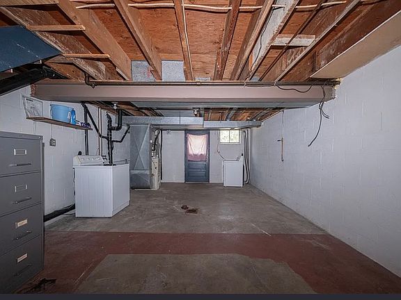 Washer and dryer located in the basement.