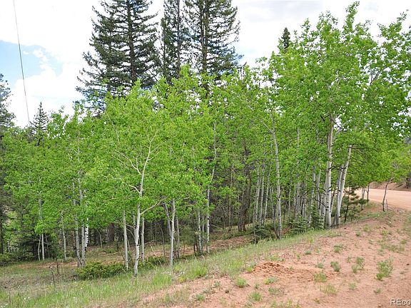 Discover privacy in nature on this 1.12-acre vacant lot nestled amidst tall pines and aspens with gently sloped terrain and an easy build site. Conveniently accessible via county-maintained roads, this property offers tranquility without sacrificing convenience. You'll see where someone started to clear out a path for a driveway into a small leveled out area perfect for camping - just make sure to follow the neighborhood's 14-day policy. Electricity, water line and natural gas are all at the property line! Cripple Creek Mountain Estates residents enjoy exclusive access to a community center featuring an indoor heated pool, fitness center, and courts for pickleball, tennis, and basketball. Additional amenities include disc golf, community ponds, and nearby hiking trails, catering to an active lifestyle. Close proximity to a volunteer fire station, state park, and national forest provides added security and outdoor recreational opportunities. Within reach of the historic town of Cripple Creek, residents have access to entertainment, a grocery store, health center, and more, ensuring a comfortable living experience. This vacant lot presents an ideal canvas for creating a dream home, offering a perfect balance of natural serenity and access to a wealth of amenities in this vibrant community.