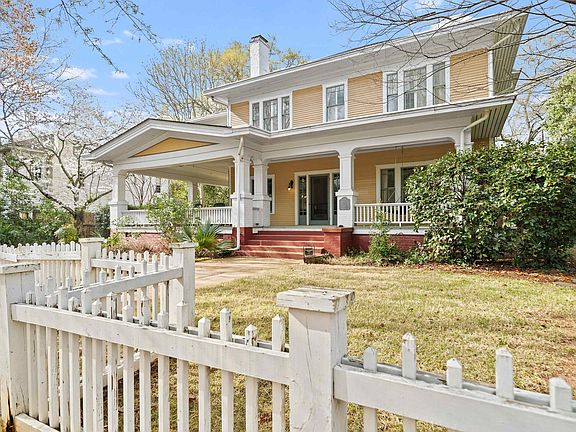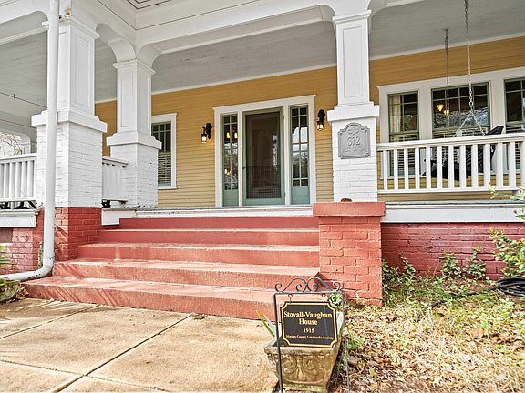 This is a historic gem! AND well located in the historic district, walking distance to the downtown square! The Stovall-Vaughan Home, built circa 1915, is a stunning example of the American Four-Square style with predominant Prairie and Craftsman influences. Sitting on a half-acre lot just off the main thoroughfare, this beauty fronts West Central and the driveway is off Kolb St. Custom designed by Leila Ross Wilburn, one of Georgia's first female architects, the original blueprints still hang in the office, a testament to the home's rich history. A charming picket fence and inviting sidewalks lead to the expansive wraparound front porch, complete with rocking chairs, swing and eating area-an idyllic spot for relaxation. Inside, double parlors with elegant pocket doors and original light fixtures, hand-selected by the home's original owner, Frank Stovall, exude timeless character. Gorgeous hardwood floors flow throughout, complementing the seven fireplaces with their original surrounds. The main floor is bathed in natural light and features a separate dining room, office, a spacious kitchen with a cozy keeping area, and a primary bedroom suite for convenient main-level living. A carport off the kitchen provides easy access. Upstairs, four additional bedrooms and two baths offer ample space, while a delightful sleeping porch off the master bedroom adds to the home's charm. This home blends architectural significance with modern livability, making it a rare find in a prime location. Partial basement with concrete flooring & inside/outside entrance, Tool shed. All information deemed reliable and accurate, but buyer should verify during due diligence.