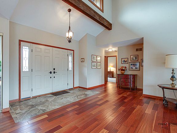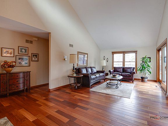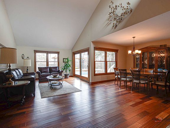 QUITE CUL-DE-SAC LOCATION & PRIVATE BACKYARD OASIS! Head into your fully fenced retreat, where warm summer days are best spent lounging by the sparkling in-ground pool or firing up the grill on the expansive deck. A second deck, nestled beneath a pergola with built-in seating, creates the perfect setting for evening cocktails and conversations under the stars. With multiple access points-including sliders from the living room, family room, and eating area-indoor-outdoor living has never been easier. Inside, rich hardwood flooring flows throughout the main entertaining spaces, adding warmth and character to every gathering. Sunlight pours into the living room, where soaring ceilings and a seamless connection to the backyard invite you to relax and unwind. The formal dining room, perfect for both intimate dinners and lively celebrations, sets the scene for memorable meals. Designed for style and functionality, the well-appointed kitchen features crisp white cabinetry with under-mount lighting, beautiful granite counters, a stunning tile backsplash, quality GE stainless steel appliances, extra-large pantry and a peninsula for extra storage and prep space. The adjacent eating area, with its own slider for quick yard access, is the ideal spot for casual breakfasts or a quiet morning coffee. Completely open to the family room, this layout keeps everyone connected. A striking floor-to-ceiling rustic stone wood-burning fireplace becomes the heart of the home, creating a cozy ambiance whether you're curling up by the fire or stepping through the slider to dine outdoors. When it's time to retreat, the main bedroom suite offers a private sanctuary with an ensuite bath and a separate vanity/changing area. Two additional bedrooms provide generous closet space, with one featuring its own slider leading to a charming front nook-perfect for a quiet moment with a book or a cup of tea. A second full bath and a convenient laundry closet complete the main level. But there's more! The finished basement expands your living space, offering a spacious rec room ready for movie nights, a playroom, or a home gym-whatever suits your lifestyle. Ample storage keeps everything organized, while the attached two-car garage adds everyday convenience. Located in a prime commuter-friendly spot, you'll have easy access to I-94 and Route 41, making travel a breeze. For nature lovers, a scenic trail practically in your backyard offers endless opportunities for biking, running, and outdoor adventures. Whether you're hosting a poolside party, relaxing by the fire, or simply soaking in the tranquility of your surroundings, this home offers the perfect blend of comfort, convenience, and charm.