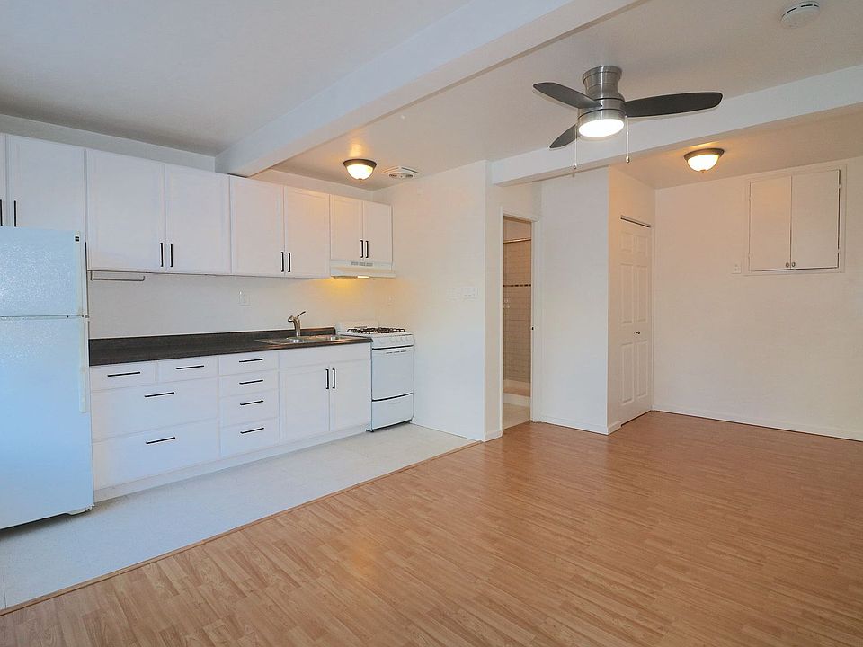 Cute Mission Hills studio with private front patio! Gas stove, refrigerator included in kitchen. Street parking. Light colored subway tile in shower! Laminate flooring in studio space. Tenant responsible for gas, electric, internet and cable. Water, sewer and trash paid by owner.