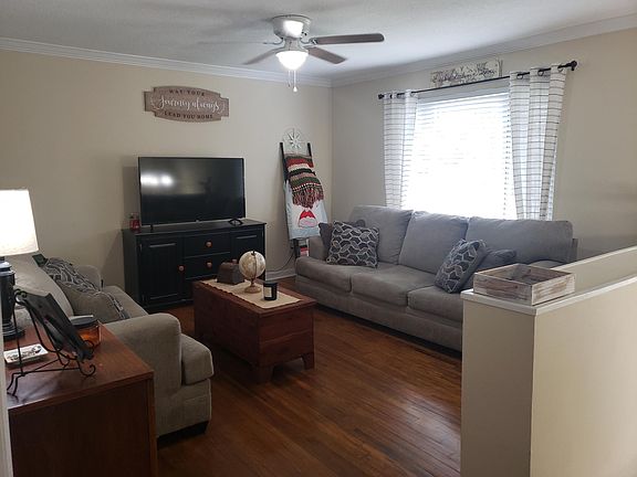 Looking for a home with a Mother in Law Quarters? Got Older Teens? Then WELCOME HOME. this home has 3 bedroom and 1 bath on the upper level. Kitchen has stainless steel appliance - dishwasher is brand new. Nice large fridge goes with home. Bedrooms all have ceiling fans. In the pictures one of the bedrooms have been used as a pantry. Bathroom has Just been remodeled in the last few weeks. Very nice hardwood floors. Downstairs has large den with double doors, large bathroom that has the washer and dryer hook ups. the Bedroom has a door that leads to back yard. Did you notice the new DECK? New shed in the back yard stays with the home.
