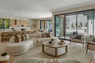Sparkling poolCustom woodworkBespoke white oak cabinetryCrisp architectural linesSpectacular rooftop deckSculptural staircasePrimary suite