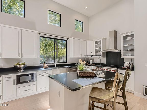 Welcome to this exquisite 2016-built luxury home in the heart of Arcadia! Nestled in the exclusive Arcadia Orchard community—an enclave of just five custom-built homes—this stunning property offers four bedrooms, an office, a spacious loft, and four bathrooms, ensuring ample space for both family and guests. The primary suite is conveniently located downstairs, featuring a resort-style bathroom with a soaking tub, walk-in shower, and an oversized walk-in closet. The open-concept design boasts soaring 20-foot ceilings, seamlessly connecting the kitchen, dining area, and living room. The chef's kitchen is a showstopper, complete with stainless steel Sub-Zero appliances, a Wolf gas range, an oversized island, and abundant cabinetry for storage. Step outside to your lush, private backyard oasis, perfect for entertaining or unwinding. Enjoy the beautifully landscaped space, ideal for relaxing under the Arizona sky. Situated in an incredible cul-de-sac location, this exclusive community offers both privacy and convenience, just steps from Arcadia's most beloved dining spots, including The Vig, La Grande Orange, and Postino. Don't miss this rare opportunity to own a custom-built masterpiece in one of the most sought-after neighborhoods!