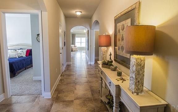 Hawk's Landing, is located in close proximity to Pace's SS Dixon Intermediate and Sims Middle School! Need 4 bedrooms? Our "Rhett" floorplan is perfectly layed out for the whole family. The fourth bedroom is tucked away, perfect for a teen suite, office, or guest room. Gorgeous arch details in your long foyer, plenty of space to personalize with décor. Double treyed ceilings in living room, with crown moulding. GORGEOUS open kitchen with corner pantry, granite countertops, HUGE double sided island with large overhang for 3-4 barstools. Stainless Steel Frigidaire appliances. The master bedroom features a trey ceiling as well, with crown moulding. Master on-suite bathroom is very spacious and features an impressive, 5-foot floor-to-ceiling tile shower (with seat) AND a garden tub. Also has raised, double vanities, a very large walk in closet and a separate water closet (toilet room). The Rhett floorplan also has a separate laundry room and COVERED Back Porch! Photos are NOT of Actual house- under construction- similar house. This all brick home features Fabric Shield Hurricane shutter protection. Pictures may be of similar, but not necessarily of subject property, including exterior and interior colors.