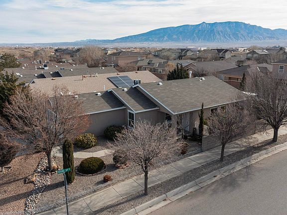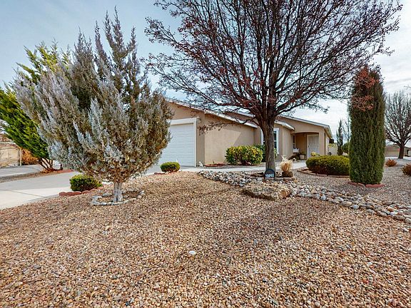 Welcome to this beautifully maintained corner lot home in Rio Rancho! As you step inside, you're greeted by a spacious living room with an open floor plan that seamlessly flows into the kitchen perfect for both everyday living & entertaining. On chilly nights, cozy up by the gas fireplace, and in the warmer months, enjoy the cool breeze as you open the stunning French Doors that lead to a backyard with views of the Sandia Mountains. The outdoor space is ideal for summer barbecues under the porch or gardening in the well kept yard.The primary bedroom offers a generous walk-in closet and a private bathroom with a walk-in shower. The second bathroom features a relaxing tub, perfect for bubble baths or an Epsom salt soak. This home has been lovingly cared for and is ready for it's