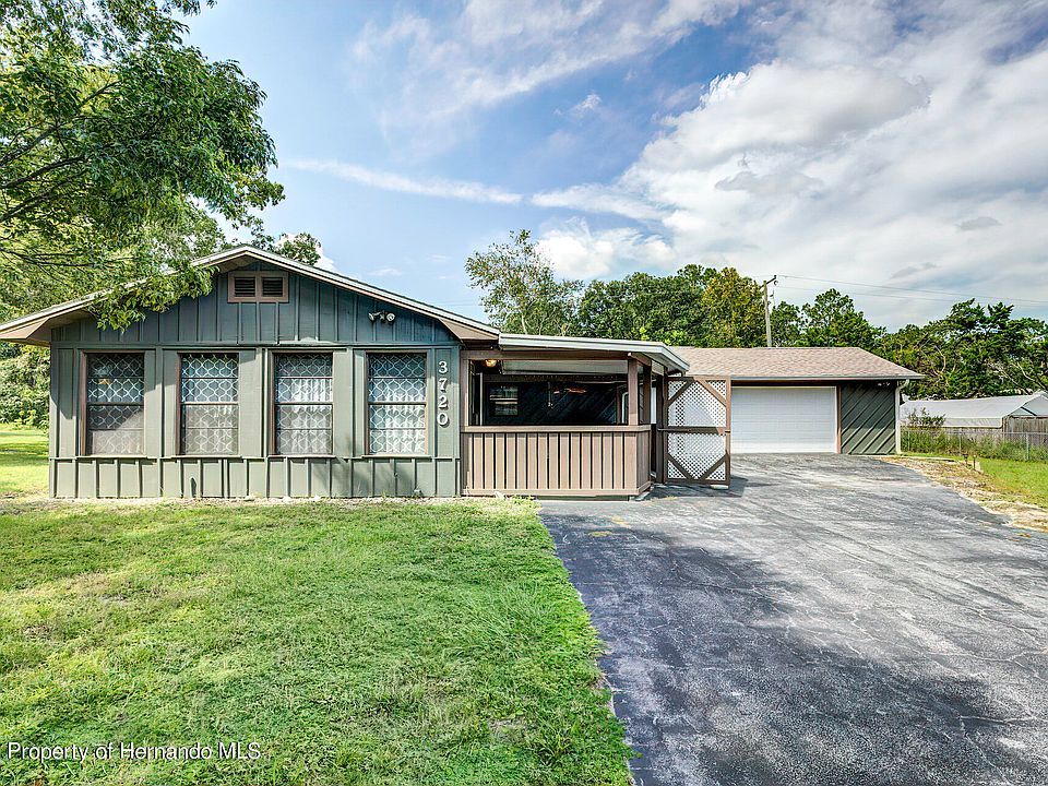Welcome Home! This 2 bedroom, 2 bath home is located on a nice corner lot, in a quiet area and just minutes from shopping! Enter the home through an enclosed front porch into a sitting room, or can be used as an office. The spacious eat in kitchen is across from the living room, which has an Electric Fireplace and sliders that open to two extra rooms! The master bedroom has a walk in closet and a bathroom with a walk in shower. The generous sized second bedroom is on the other side of the house, offering plenty of privacy. The large garage has a washer and dryer and plenty of workbench space. There is also a detached shed in the backyard for storage and lawn equipment. No deed restrictions, plenty of room to park an RV and boat. The roof is one year old, the A/C is one year old. If you're looking for tranquility, this is the perfect home for you!