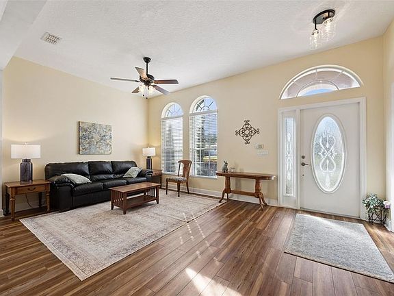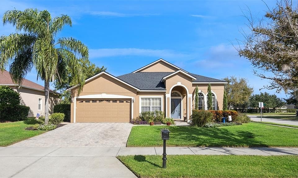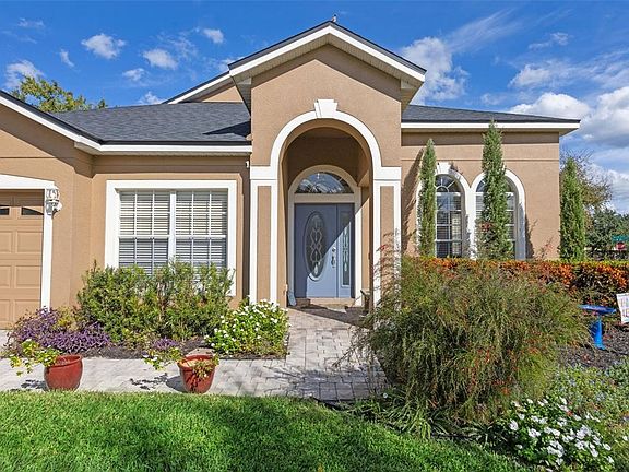 Welcome to this stunning 4-bedroom, 2-bathroom home located on a desirable corner lot in a vibrant community filled with amenities! Step inside to find tall ceilings, an open, split floorplan, and no carpet throughout, offering both style and easy maintenance. At the heart of the home is a beautifully updated kitchen, complete with granite countertops, tile backsplash, stainless appliances, large island, closet pantry, updated fixtures, and a built-in banquet in the dinette—perfect for casual family meals. The kitchen seamlessly flows into the family room, creating an inviting space for gatherings and spending time as a family. A separate formal living and dining area offers additional flexibility for entertaining or relaxing. Working from home is a breeze in the dedicated office/den, featuring elegant French doors for privacy and built-ins surrounding the large, front-facing window. The spacious master retreat is located at the back of the home and offers backyard views, walk-in closet, and en-suite bathroom that boasts a large, double sink vanity, garden tub, tile shower, linen closet, and water closet. Three good size bedrooms, with large closets and windows, are located down a hallway off the left side of the home and share a large secondary bathroom, complete with double-sink vanity and shower/tub combo. Step through French doors to the covered patio and fenced backyard, ideal for outdoor dining, play, letting your pets and little ones run around without worry, or simply enjoying the Florida sunshine. The interior laundry room provides convenient access to the two-car garage, adding practicality to everyday living. This sought-after community offers a wealth of amenities including a community pool, fitness center, clubhouse, basketball, tennis, and pickleball courts, plus a park, playground, soccer field, and baseball field—everything you need for an active, fun-filled lifestyle. To top it all off, the home is just a quick walk or bike ride to Partin Elementary and Chiles Middle Schools, making this the ideal location for families with little ones! Don’t miss your chance to call this beautiful home your own—schedule your private showing today!