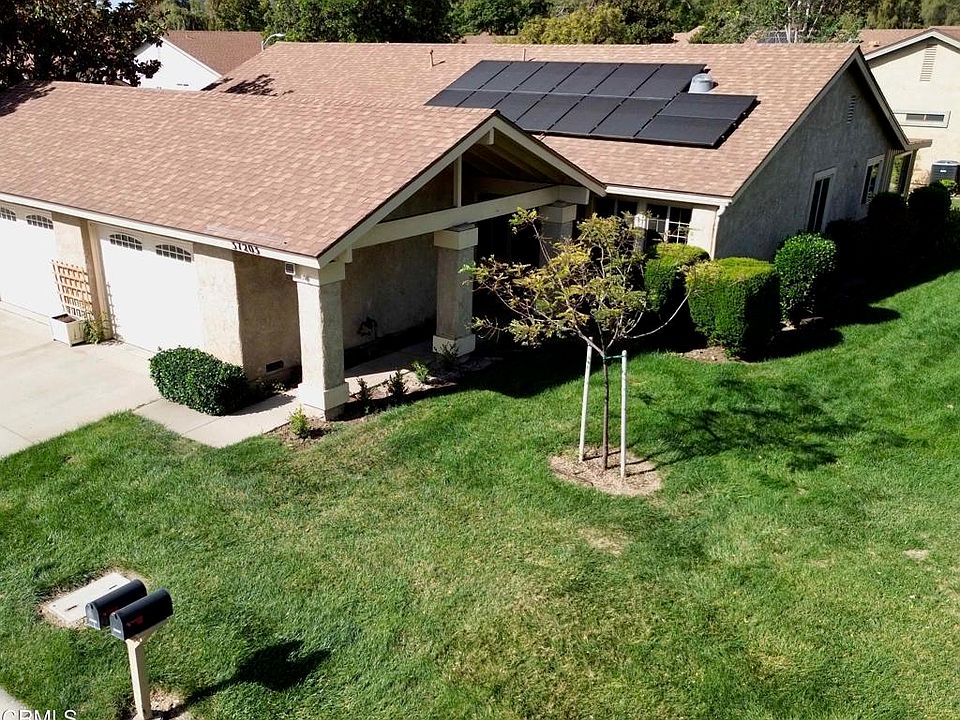 This stunning Brentwood home in Leisure Village offers beautiful views from every room and thoughtful upgrades throughout. Enjoy low utility bills with owned solar panels and added natural light from three solar tubes - two of which feature automatic night lighting.The kitchen has been completely remodeled and features recessed lighting, a spacious pantry with pull-out shelves, and abundant cabinet and counter space. Additional improvements include dual-pane windows, a new water heater and attic insulation (2025), and an updated HVAC system with new ducting (2013). Both bathrooms have been tastefully remodeled, and the decorator paint colors make this home truly move-in ready. The bonus room includes its own heating and cooling system while ceiling fans in the bedrooms and dining area provide extra comfort.This home combines energy efficiency, style, and comfort- all in the desirable Leisure Village community of Camarillo.