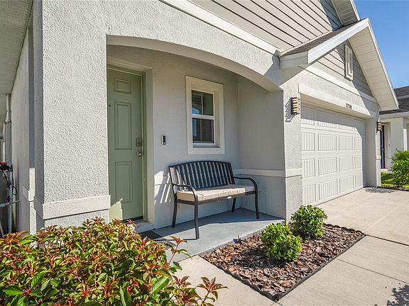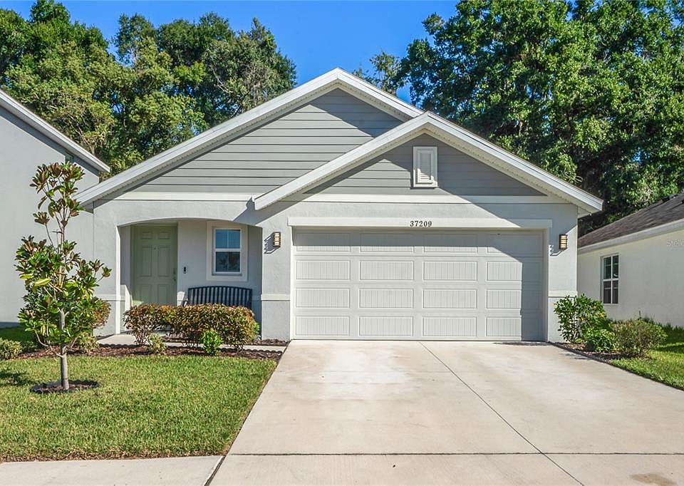 One or more photo(s) has been virtually staged. Why Wait for “New” When You Can Have “Now”? While the builder’s homes are still under construction, this beautifully finished 3-bedroom, 2-bath, 2-car garage home with a FENCED BACKYARD and under 1600sf is move-in ready. No hard hats required! From the moment you arrive, the striking EXTERIOR SIDING and stylish curb appeal make this home stand out. Take advantage of convenient features such as a SMART DOORBELL, KEYLESS ENTRY, SMART SECURITY SYSTEM, UV-PROTECTED WINDOWS and modern COACH LIGHTING. Unwind with your favorite drink on the front porch, then step inside to a welcoming foyer, the perfect place to drop your keys, kick off your shoes, and exhale home. The bright dining room is ready to host your next gathering, while two secondary bedrooms share a full bath just off the hall. The kitchen, the heartbeat of the home is ideally positioned for effortless entertaining, features a GRANITE ISLAND/COUNTERTOPS, stainless steel appliances, UNDER-SINK WATER FILTRATION and 38” popular grey tone cabinetry with sleek MODERN HARDWARE. Live comfortably in this spacious living room where you can watch the seasons upcoming games or the next Netflix series. The primary suite feels like a private retreat, offering room for your largest furniture, a WALK-IN CLOSET and an ensuite bath with double vanity and walk-in shower. A dedicated laundry room with door to the garage which features a TEXTURED EPOXY FLOORING, clean, durable, and easy to maintain. Step through the sliders to a covered lanai with an ADDED EXTENDED PAVER PATIO (19x11), perfect for outdoor dining, grilling, or relaxing in privacy. The PVC FENCING provides safety for the kiddos and pets, plus added peace of mind for playtime and gatherings. Located off SR-54 and Allen Road, Harvest Ridge offers quick access to Publix, Dunkin’, CVS and Home Depot. Take SR-54 to SR-56 for The Grove, Wiregrass Mall, dining and Tampa Premium Outlets, or get on I-75 for nearby hospitals. Only 40 minutes via SR-54 and I-275 to Tampa International Airport..convenience at your doorstep. Enjoy the perks of a new community without the wait, the noise or the uncertainty. Move in before the holidays and start celebrating sooner!