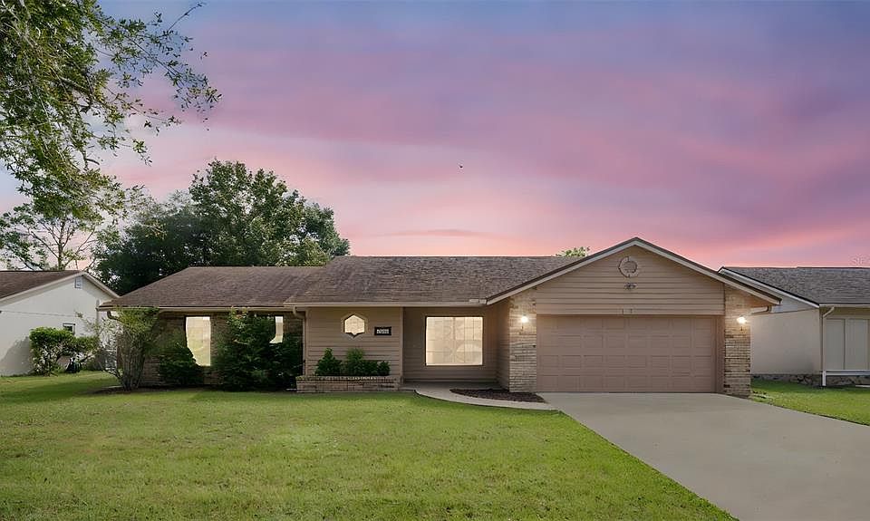 One or more photo(s) has been virtually staged. Tucked away on a quiet cul-de-sac in the sought-after Hunter’s Trace community, this move-in ready ranch-style home blends comfort, convenience, and charm. With sidewalk-lined streets, a spacious double-wide driveway, and a low yearly HOA, it’s the kind of neighborhood you’ll love coming home to. Step inside through the foyer and you’re immediately welcomed by an open floor plan. The living room flows seamlessly into the dining area, where French doors open to a patio area—perfect for indoor-outdoor living. The kitchen offers stainless steel appliances, a tiled backsplash, ample cabinetry, and a breakfast bar that overlooks the family/bonus room. Whether you’re entertaining or enjoying a quiet night in, the layout keeps everything connected. The primary suite is thoughtfully designed with dual closets and a private ensuite featuring two separate vanity areas, divided by a pocket door for added privacy. A sliding glass door leads directly to a personal patio retreat, extending the space outdoors. Two additional bedrooms share a full bath with a tiled shower/tub combo—ideal for guests or family. At the back of the home, the large family/bonus room opens through sliding glass doors to another patio overlooking the fenced-in backyard. With plenty of room for gatherings, grilling, or simply relaxing under the Florida sun, it’s a space ready for summer BBQs and weekend fun. Located just minutes from UCF, Research Park, shopping, dining, and major highways, this home offers both peace and accessibility.