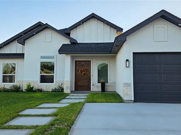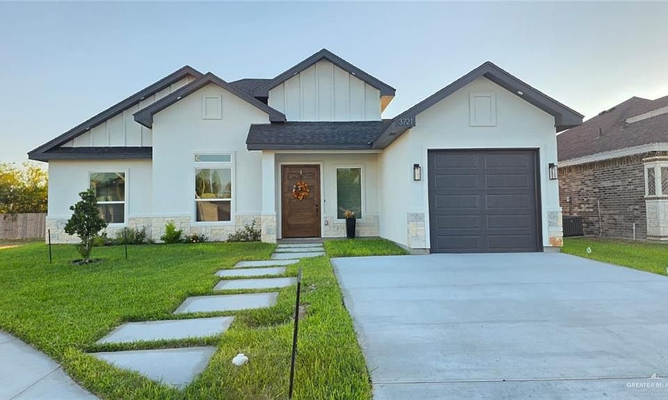 Welcome to 3721 Diamond Head Avenue in Edinburg, Texas, a beautiful brand-new construction located in the highly sought-after Sharyland ISD. This modern and elegant home features three spacious bedrooms and two stylish bathrooms, including one conveniently located on the exterior. The open-concept layout highlights bright, neutral tones, sleek finishes, and abundant natural light throughout. The dining area includes a stunning built-in buffet with a wine cooler, adding a touch of sophistication and functionality. The one-car tandem garage allows space for two vehicles or can be used as an open patio for gatherings or barbecues. The backyard offers a generous patio slab, perfect for relaxing or entertaining. Set in a quiet and desirable neighborhood, this home beautifully combines modern design, comfort, and practicality. Priced to sell!!!