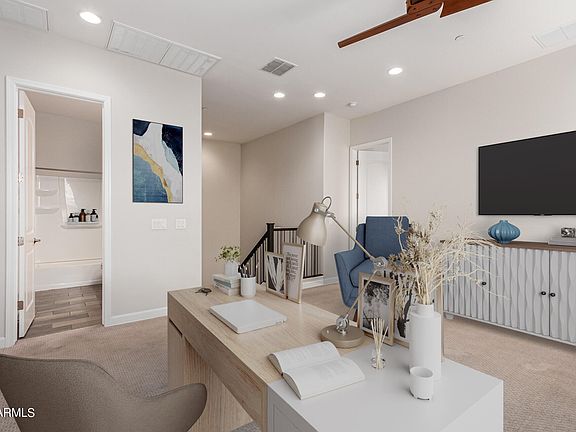 This stunning 3-bedroom, 2.5-bath townhome, built in 2019, is located in the highly sought-after Arcadia neighborhood within a gated community. The home features a spacious 2-car garage and beautiful wood plank tile flooring throughout the first floor. The modern kitchen boasts elegant grey cabinets, quartz countertops, stainless steel appliances, and a convenient island with seating. Upstairs, you'll find a large loft, perfect for a home office or additional living space. The expansive master suite is filled with natural light and includes a luxurious master bath with a double vanity and a walk-in shower. Outside, enjoy the small private yard with pavers and low-maintenance artificial turf—ideal for relaxation. Additionally, this home comes equipped with a water softener and an alarm system, adding to your comfort and peace of mind.